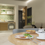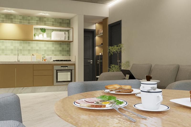 Amplo e sofisticado, este apartamento de 75 m² é perfeito para famílias maiores ou grupos. Possui duas suítes completas e uma sala de estar confortável com sofá-cama. A cozinha totalmente equipada e a varanda privativa garantem que você se sinta em casa, com o toque de luxo dos enxovais premium.
